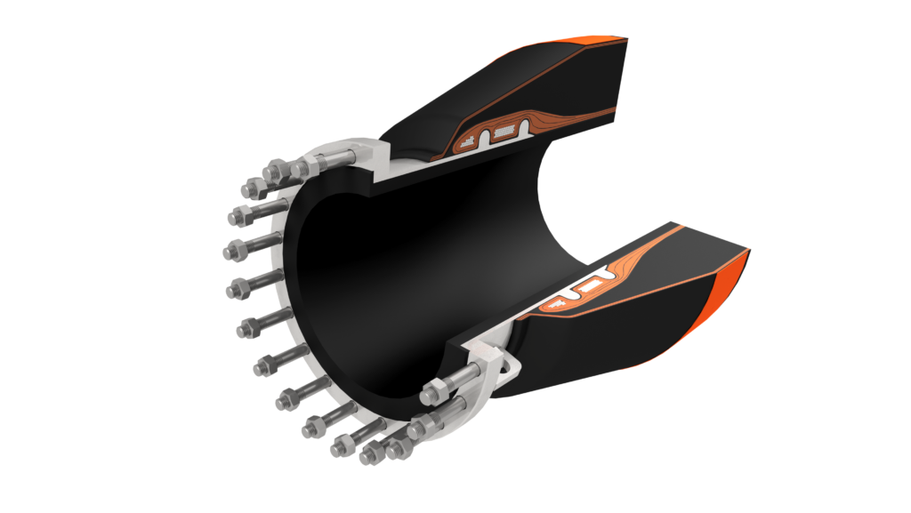 This hose works as a conjunctive element of a trailing suction hopper dredger (TSHD) and a tapered hose. It has no floating part, which ensures the hose’s outstanding flexibility. It enables a smooth transportation of abrasive slurry and delivers additional maneuvering benefits.