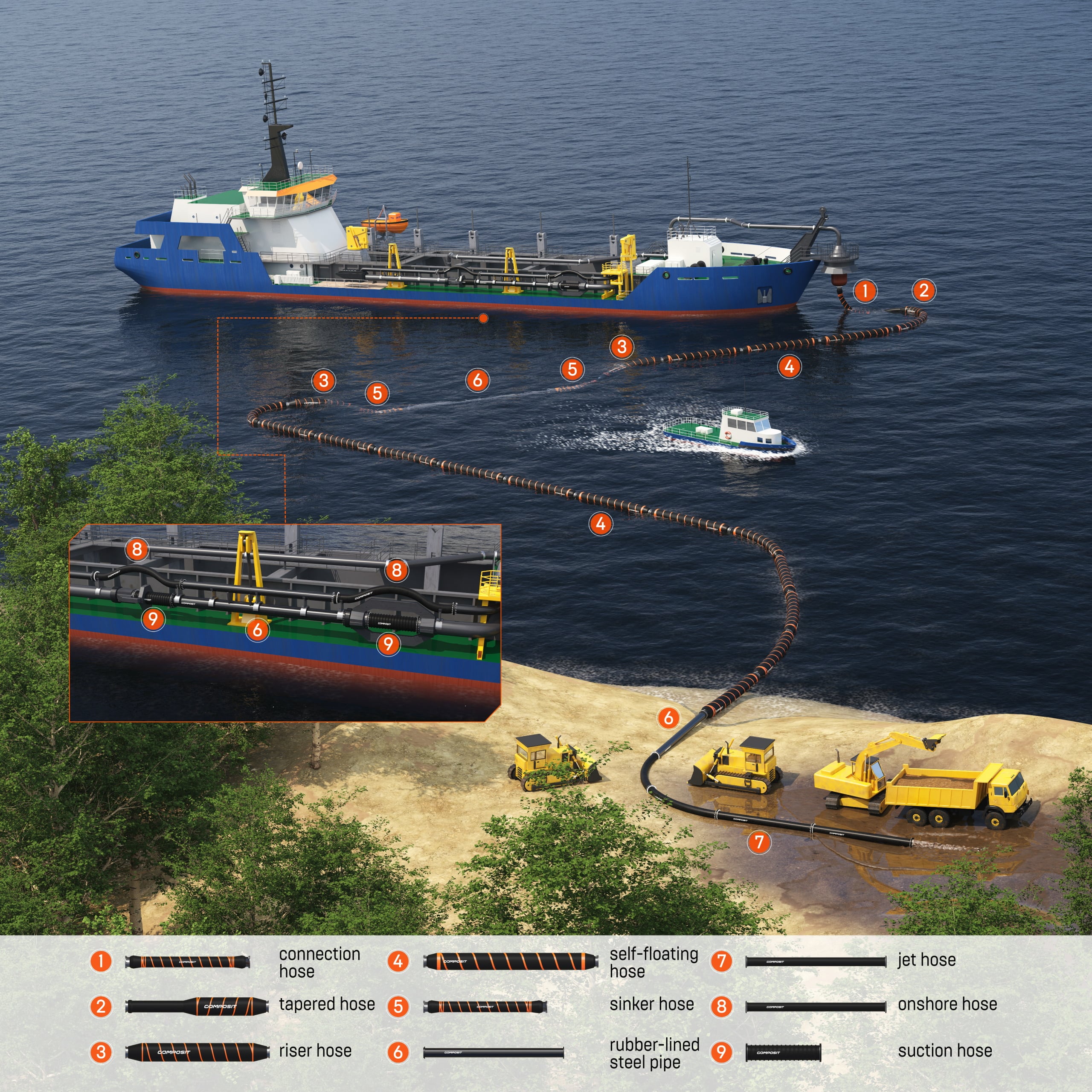 Composit is working extensively to enter and prosper in the international dredging market. Shipments of dredging hoses with an inner diameter of 500 mm and higher for international projects confirm that statement.