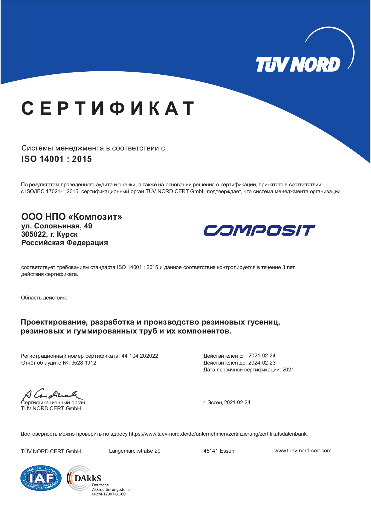 ISO 14001:2015 (регистрационный номер 44 104 202022) от 24.02.2021 г.