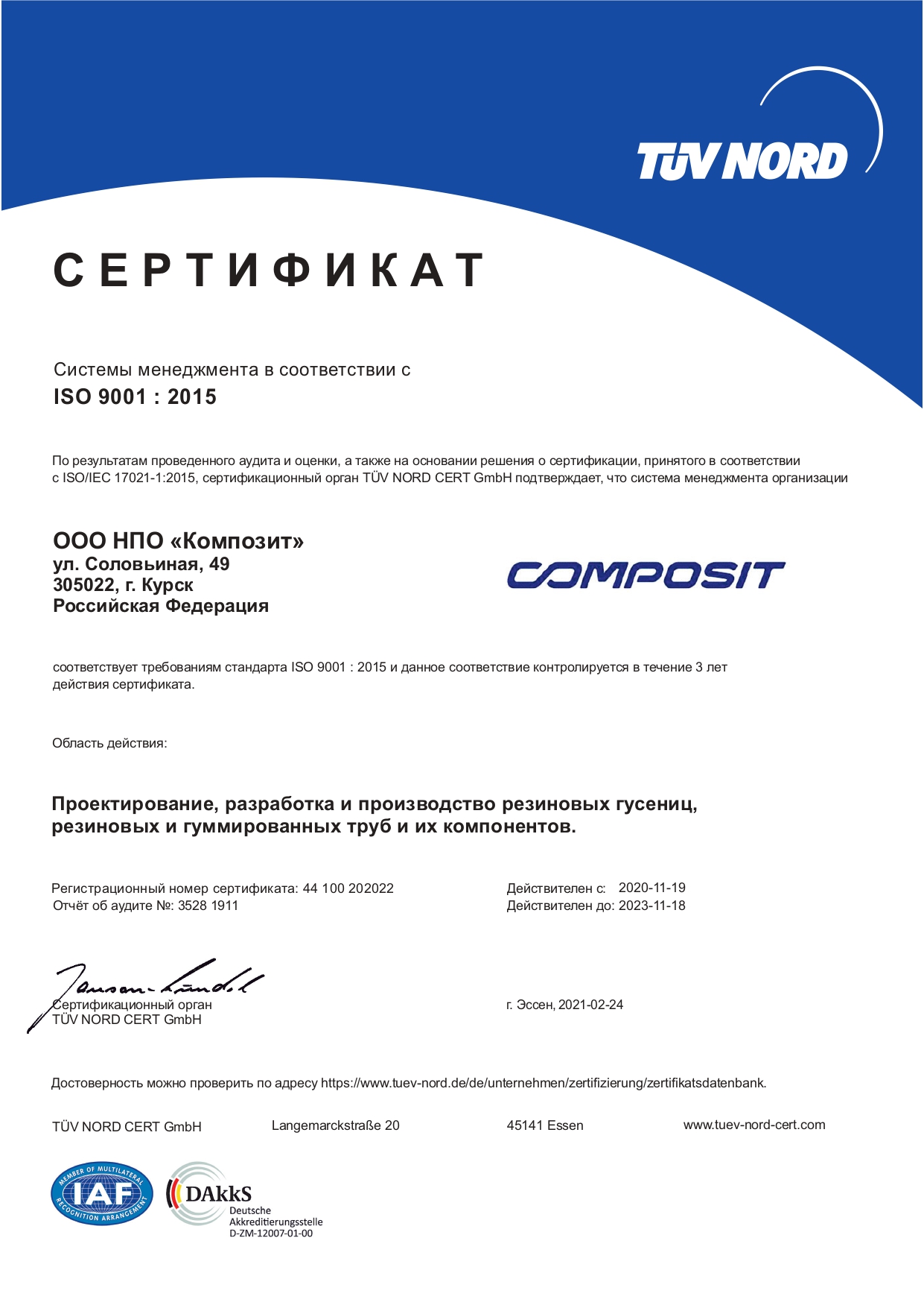 Да. Сертификаты ISO 9001:2015 (регистрационный номер 44 100 202022) от 19.11.2020 г.,